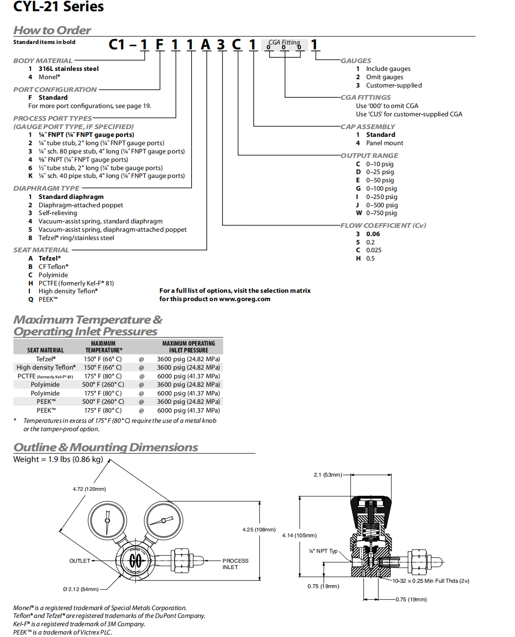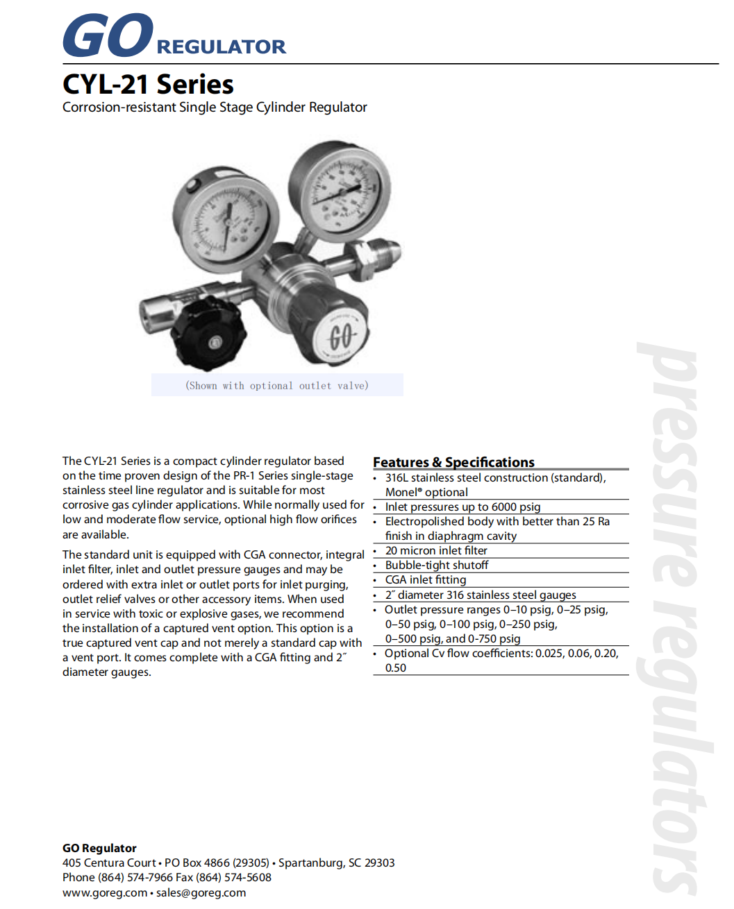 GO CYL-21 C1 鋼瓶單級(jí)